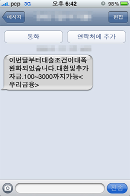 스팸 발송 유형별로는 대출이 30.8%로 가장 많았고 도박 25.8%, 성인서비스 21%로 나타났다. 주로 대량 문자발송 서비스를 이용했고 이통사 홈페이지의 개인 웹메시징 서비스를 이용하는 경우도 29.6%에 달했다.