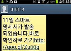 이밖에 ‘독도는 우리땅’이라고 적힌 문자를 보내 애국심을 이용하거나 건강보험공단을 사칭해 무료 암검진 문자를 발송하는 스미싱도 빈번했다.